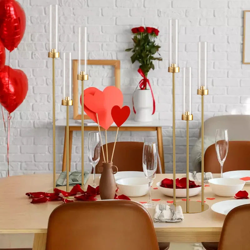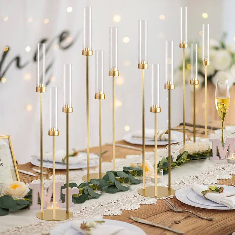 Gold 3-arm Candelabra Set – combines durability, style, and practicality—ideal for hosts and decorators who want effortless elegance. The acrylic shades diffuse light beautifully, while the gold finish ensures a luxe, photo-ready aesthetic.